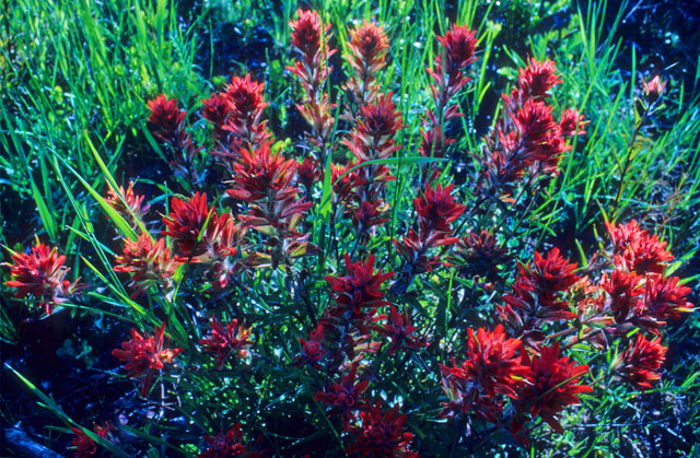 Castilleja (Castilleja miniata), Indian Paintbrush, ist eine Charakterblume der Kanadischen Rocky Mountains.